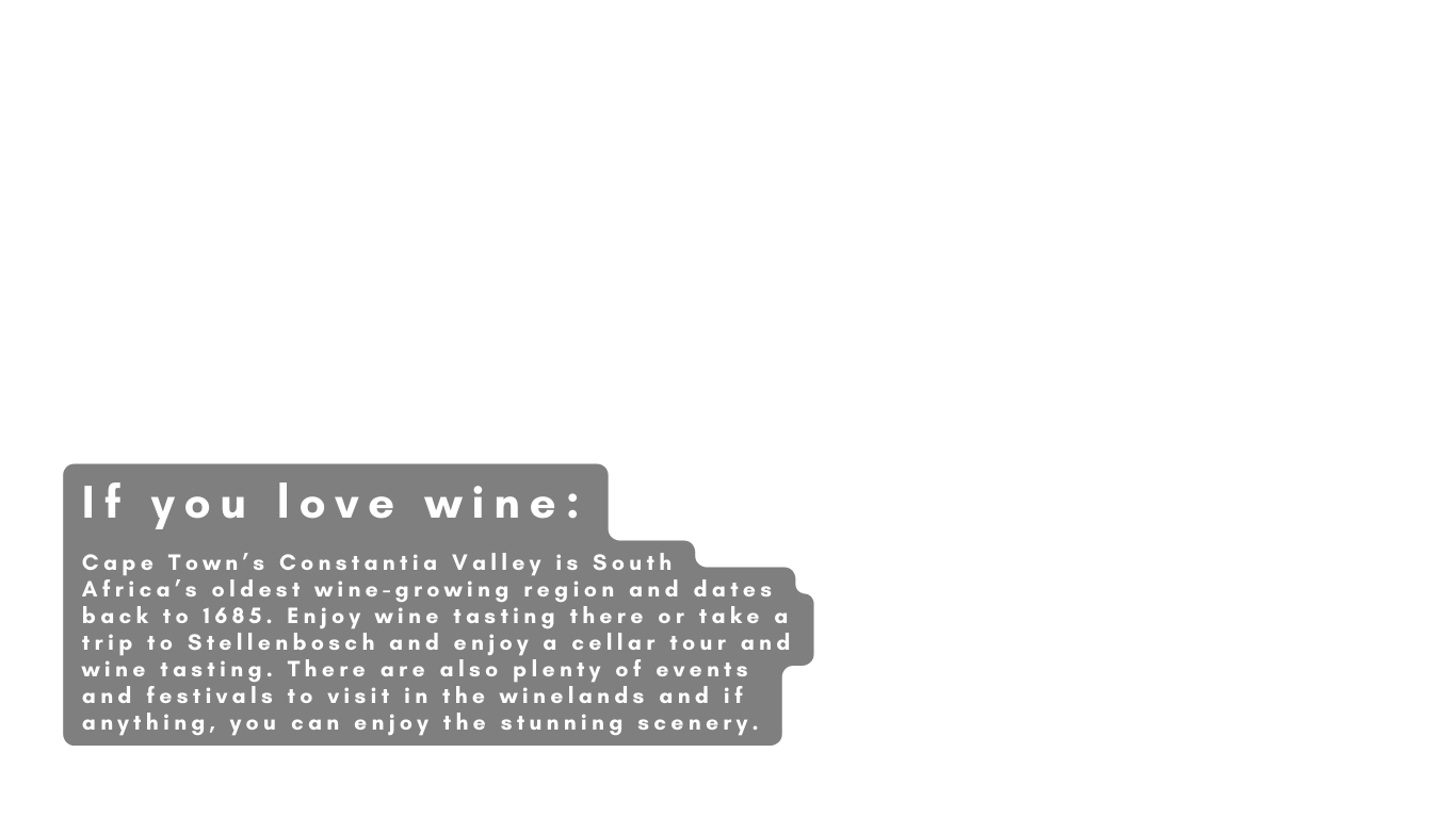Cape Town is a foodie and wine-lover paradise. The city is home to some of the best restaurants globally and many award-winning wineries. So, there's something to delight your taste buds around every corner.